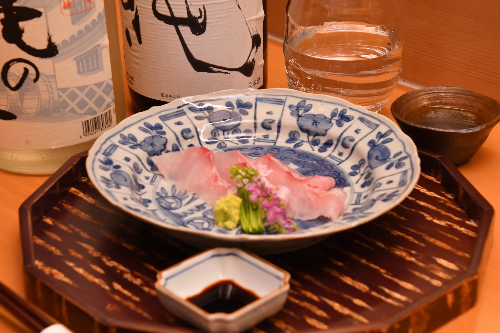 JAPANESESAKEお好みの酒器を選んでいただけます。大吟醸酒など香りの高い物はワイングラスなど、お好きな飲み方で日本酒を提供いたしております。また、お酒の魅力を最大限に引き出すため、季節ごとのお…